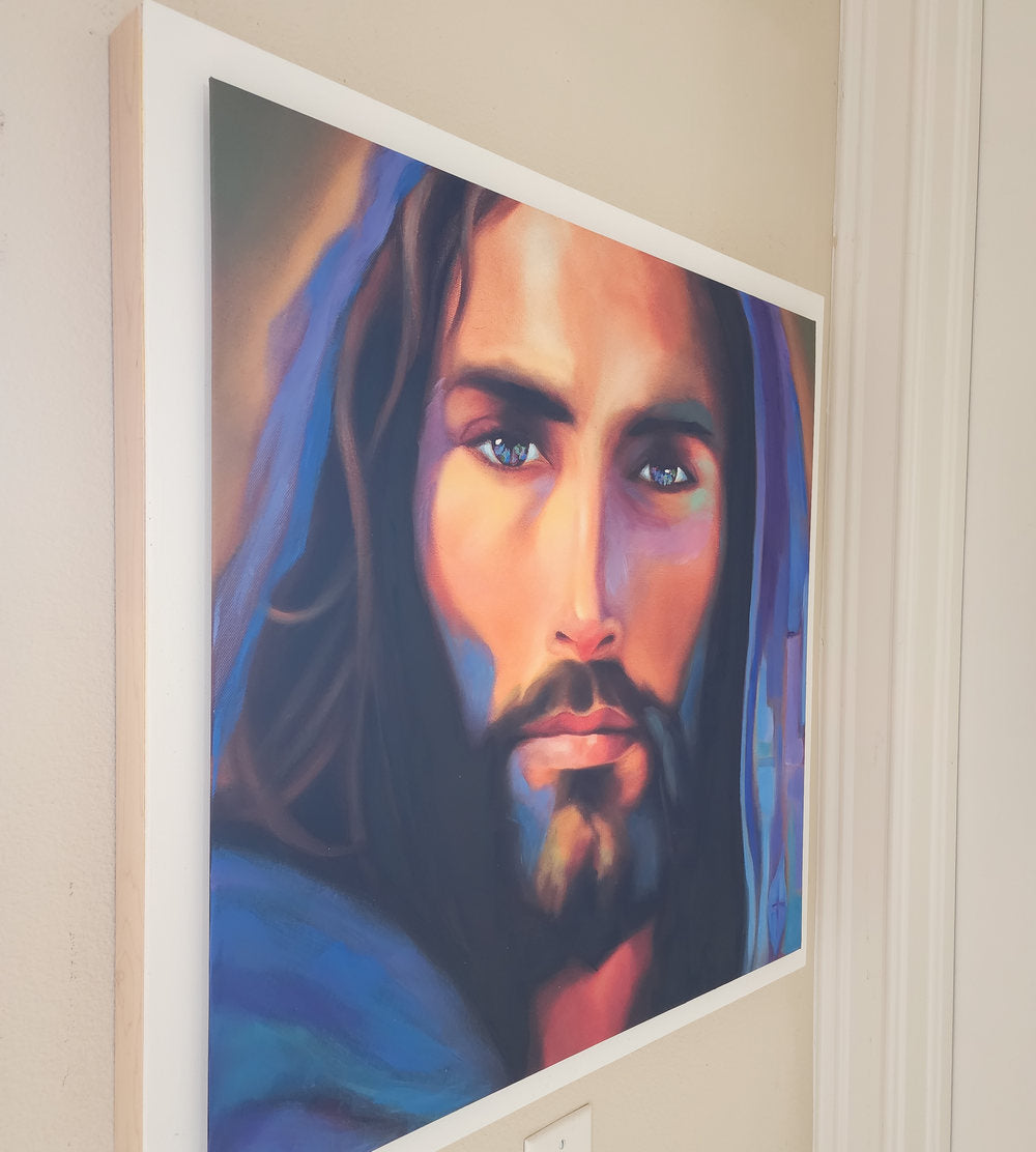 The giclée print is a professional reproduction of an oil painting titled "Follow Me" which was completed in 2023 by Scott Patton. It is a stunning portrait of Jesus Christ, rendered in rich, radiant hues of purples and blues. Inspired by the verse from Matthew 4:19 — “Come, follow Me,” Jesus said, “and I will make you fishers of men.” — this artwork captures not just a likeness, but an invitation, a divine moment frozen in time where the Savior calls out to the viewer with piercing, soulful eyes.