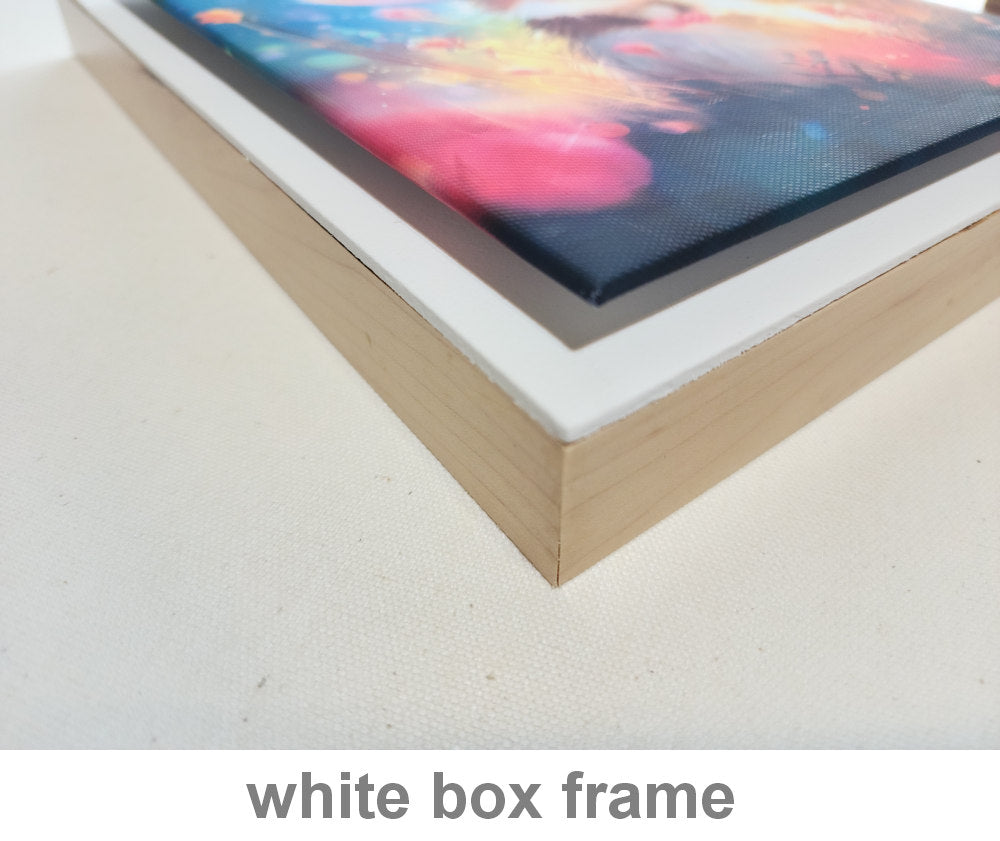 PLEASE NOTE: The unframed pieces are approximately 3/16" thick and the boxed framed pieces are approximately 2" thick and are also around 1.5" larger in dimensions per side. For example - the 15 x 20 box framed print with actually be around 17.5" x 21.5" x 2" thick. The frames are made out of reclaimed hard maple wood for a durable and beautiful finish and do no include hanging hardware because the frames hang well on any sturdy nail or screw.