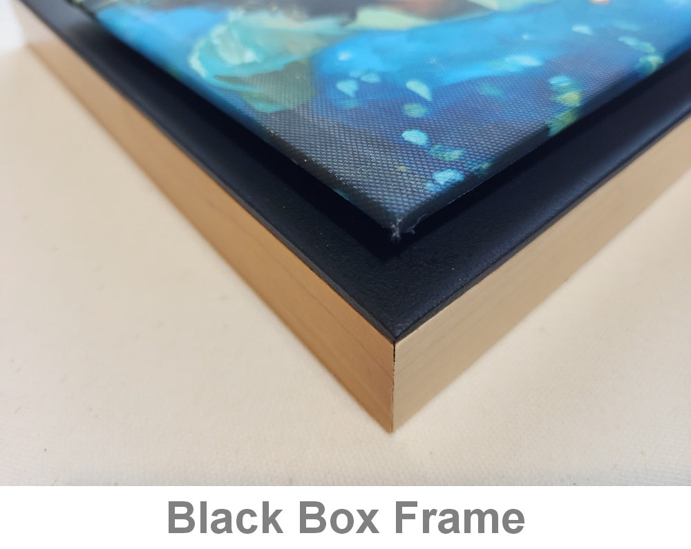 PLEASE NOTE: The unframed pieces are approximately 3/16" thick and the boxed framed pieces are approximately 2" thick and are also around 1.5" larger in dimensions per side. For example - the 15 x 20 box framed print with actually be around 17.5" x 21.5" x 2" thick. The frames are made out of reclaimed hard maple wood for a durable and beautiful finish and do no include hanging hardware because the frames hang well on any sturdy nail or screw.